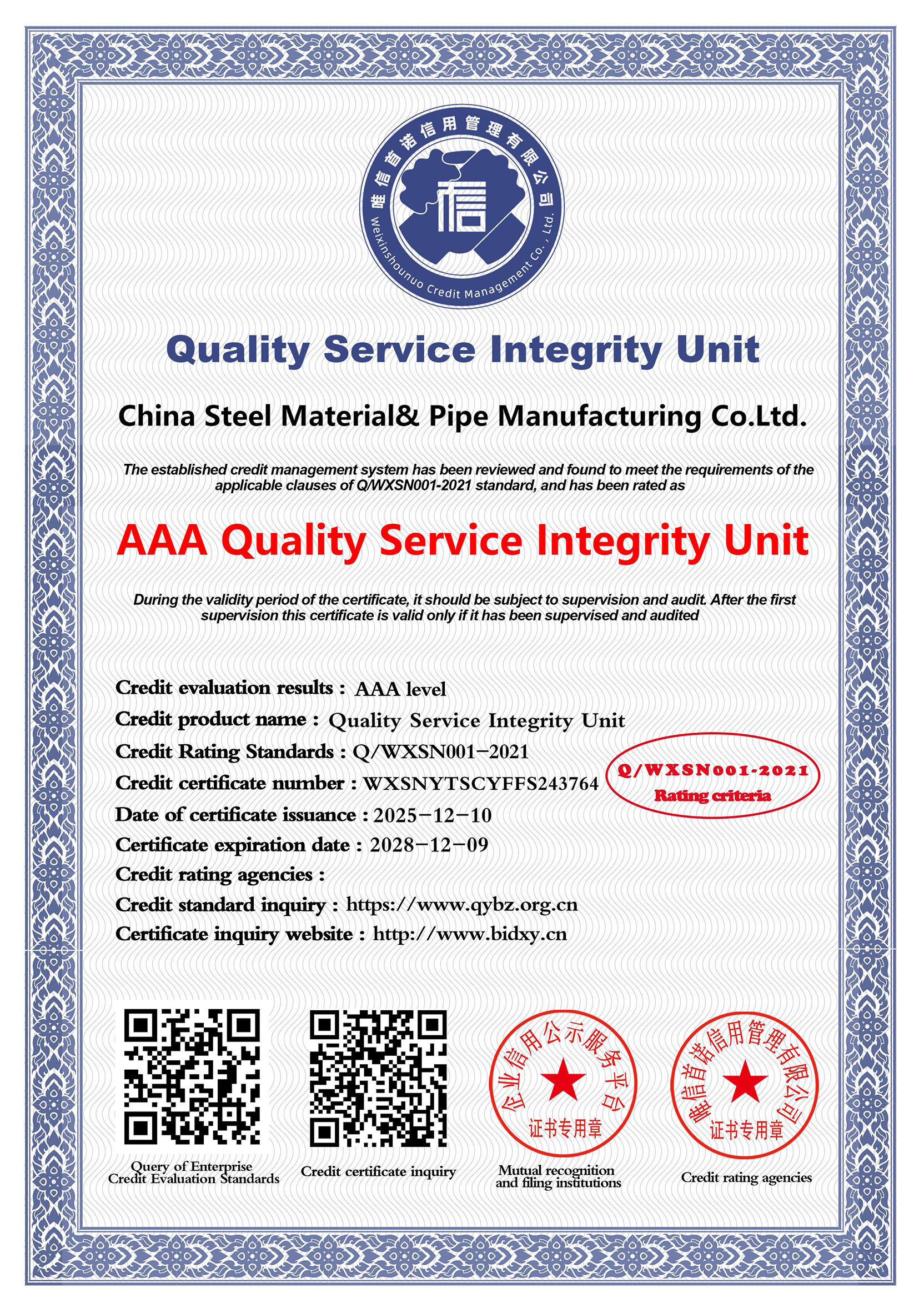 Copyright © 2025 China Steel Material &Pipe Manufacturing Co.,Ltd. All Rights Reserved.